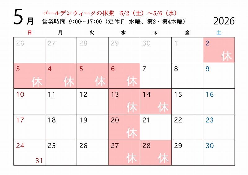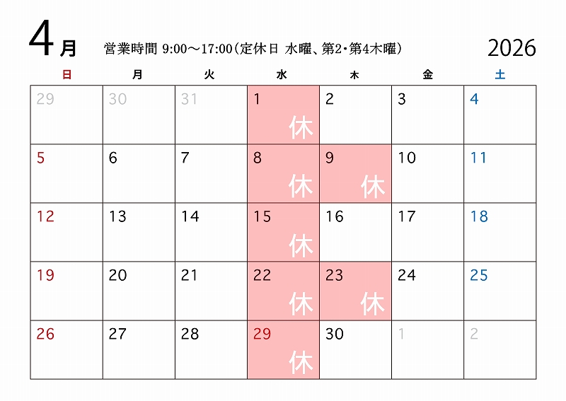 4月の営業日のご案内2026-04-01